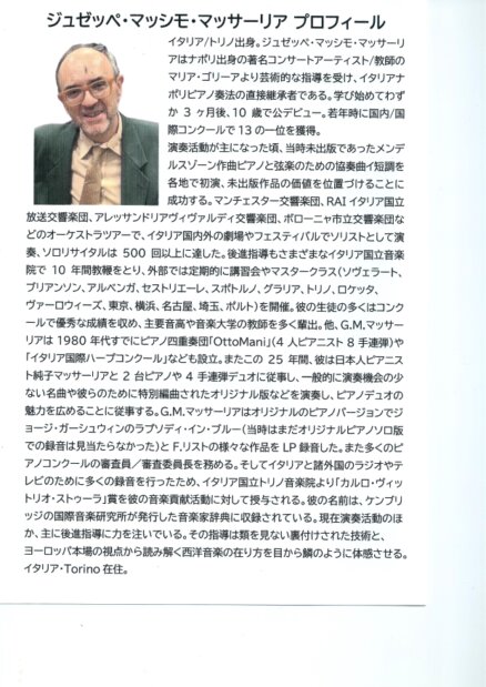 Nella Fantasia op.51 di Martucci, ha anche fatto riscoprire la consumata tecnica interpretativa ed il tocco ricco di sfumature del Massaglia. Irruenta l’interpretazione del pianista di fronte alle battute dell’Islamey di Balakirev. La Rapsodia in blue e’ stata presentata nella sua giusta veste scintillante e sinfonica.